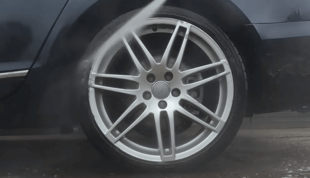 最初にホイールとタイヤにスプレーして数分放置したところ、泥汚れはかなり除去されました。